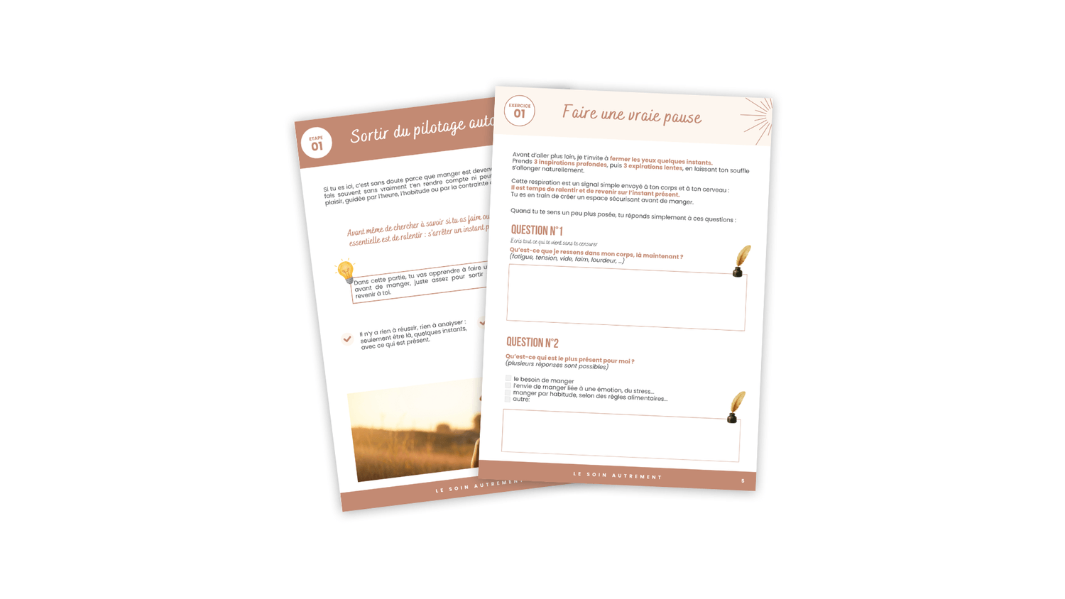 À travers un carnet pratique et des ressources complémentaires, vous allez apprendre à vous poser avant de manger et à mieux comprendre ce qui se joue pour vous et sortir du pilotage automatique.